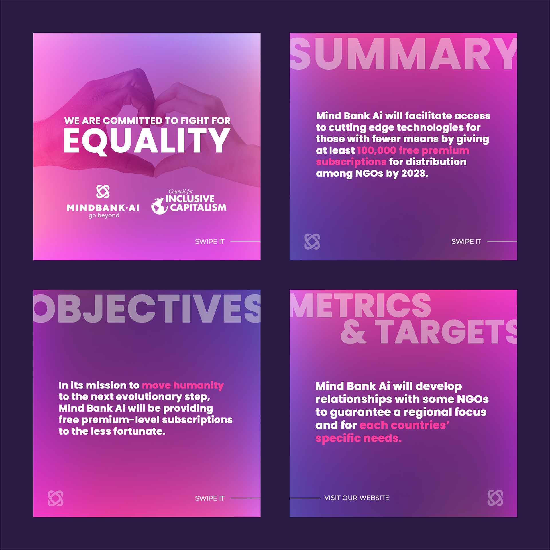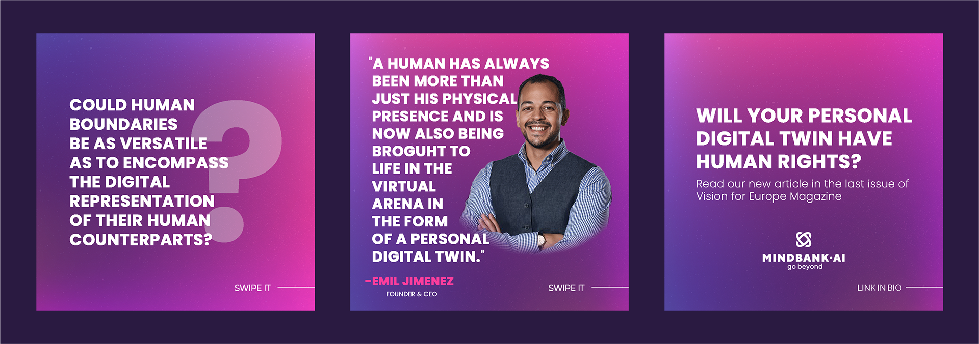 Social media and marketing campaign visuals for a start-up project called Mindbank Ai.